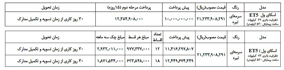 شرایط جدید فروش خودرو برقی اسکای ول ET۵